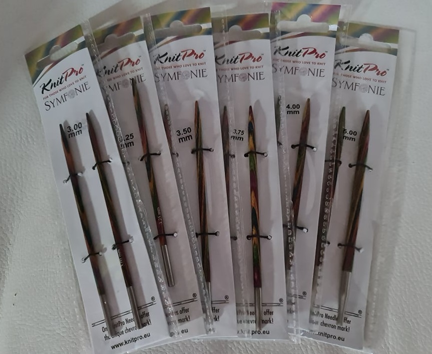 Šroubovací vyměnitelné jehlice řady Symfonie jsou vyrobené z tvrdého a barveného dřeva s unikátním chevron efektem, opatřeny vrstvou odolného laku a pečlivě vyleštěné. Materiál je velmi příjemný, na dotek teplý, vhodný pro jakoukoliv přízi, která po tomto povrchu lehce klouže a nezpomaluje se rytmus pletení. Špička je adekvátně ostrá, přechody mezi jehlicí a lankem jsou plynulé, příze zde nezadrhává a jednoduše přejde na lanko. Jehlice jsou lehoučké.